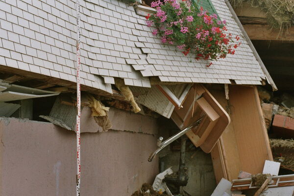 Des mesures en termes de conception et de renforcement permettent de réduire considérablement le danger pour les personnes et les biens matériels, par exemple si le bâtiment est placé de manière optimale sur le terrain ou si l'on a choisi une forme et une orientation adaptées pour le bâtiment. Évitez de prévoir des ouvertures dans la paroi extérieure exposée aux laves torrentielles ou protégez-les en conséquence. Prévoyez, dans le secteur exposé aux laves torrentielles, uniquement des locaux où les personnes séjournent peu de temps. Réalisez les parois extérieures et les ouvertures en construction massive et rendez étanche la zone potentiellement exposée.
